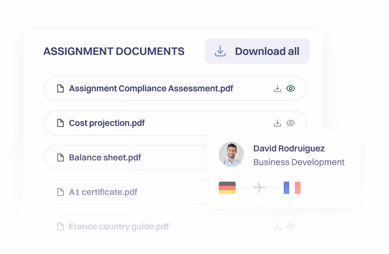 Zentrale, sichere Ablage aller assignmentbezogenen Dokumente - von A1-Bescheinigungen bis Balance Sheets - prüfungssicher und strukturiert.